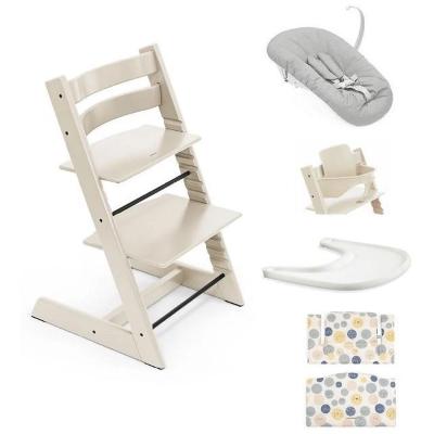 Kit Stokke composto dalla sedia Tripp Trapp, il New Born Grey, vassoio, Baby set  e cuscino.